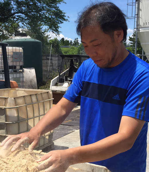 原料は、地ビールの搾りかすやウィスキーの澱、おからなどをふんだんに使い、牛匠たちが長年の経験とノウハウを注ぎ込み自らブレンドして作り上げたアルコール発酵飼料です。
