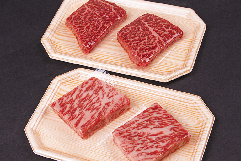 部位 赤身・霜降り・希少部位など スペック 1シート 50g 上記写真上段 赤身ステーキ用 50g*2シート 下段 霜降りステーキ用 50g*2シート